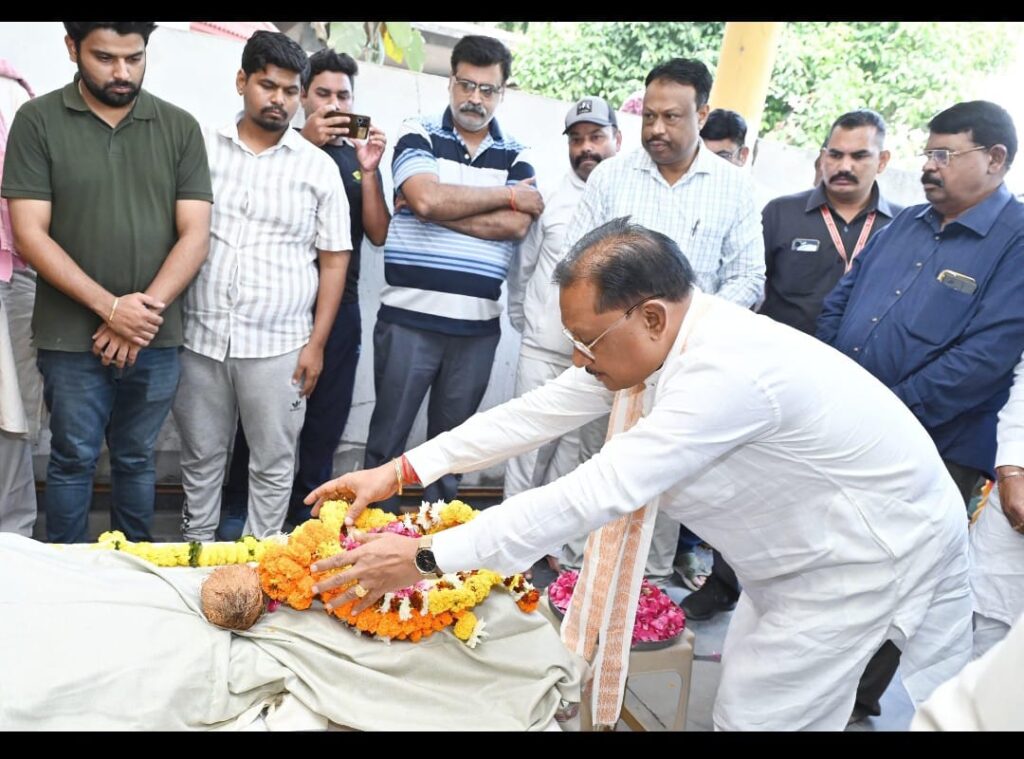 रायपुर, 07 नवंबर 2024/ मुख्यमंत्री विष्णु देव साय ने आज पूर्व राज्यसभा सांसद स्वर्गीय श्री गोपाल व्यास जी के निधन पर पुरैना स्थित निवास पहुंचे और अंतिम दर्शन कर भावभीनी श्रद्धांजलि अर्पित की। मुख्यमंत्री श्री साय ने शोक संतप्त परिजनों से मुलाकात कर उन्हें ढांढस बंधाया। उल्लेखनीय है कि स्वर्गीय श्री गोपाल व्यास जी के मंशानुरूप उनका पार्थिव शरीर अखिल भारतीय आयुर्विज्ञान संस्थान को दान किया जाएगा। इस दौरान राजस्व मंत्री टंकराम वर्मा, पूर्व राज्यपाल रमेश बैस, विधायक विक्रम उसेंडी एवं जनप्रतिनिधिगण उपस्थित रहे।