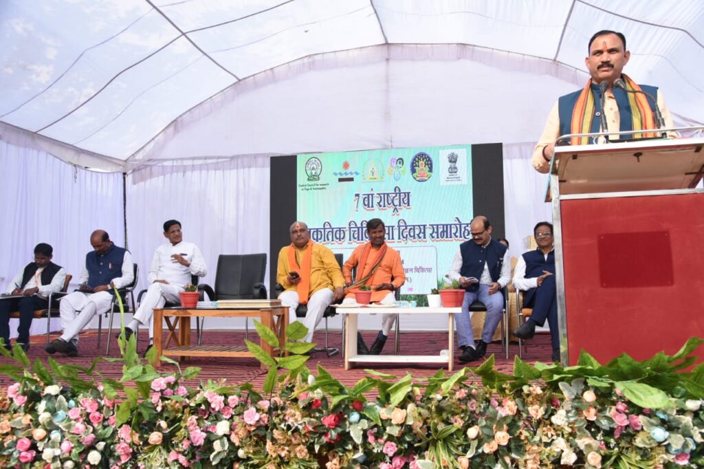 दुर्ग, 21 नवम्बर 2024/प्रदेश के लोक स्वास्थ्य एवं परिवार कल्याण, चिकित्सा शिक्षा मंत्री श्री श्याम बिहारी जायसवाल आज श्री महावीर प्राकृतिक एवं योग चिकित्सा विज्ञान महाविद्यालय नगपुरा परिसर में आयोजित राष्ट्रीय प्राकृतिक चिकित्सा दिवस कार्यक्रम में शामिल हुए। इससे पूर्व मंत्री श्री जायसवाल ने श्री उवसग्गहरं पार्श्व तीर्थ मंदिर में भगवान पार्श्वनाथ का दर्शन एवं पूजा-अर्चना किया। दुर्ग ग्रामीण विधायक श्री ललित चंद्राकर भी साथ मौजूद थे। समारोह को संबोधित करते हुए मुख्य अतिथि स्वास्थ्य मंत्री श्री श्याम बिहारी जायसवाल ने कहा कि प्राकृतिक चिकित्सा के क्षेत्र में कार्य करने वाले यह संस्थान प्रदेश का पहला संस्थान है, जिसने पुरातन चिकित्सा पद्धति को पुर्नजिवित किया है। उन्होंने कहा कि प्राकृतिक चिकित्सा पद्धति कोई नई विधा नहीं है। आज हमें अपनी पुरातन चिकित्सा पद्धति की ओर ही लौटना होगा। भारत ज्ञान-विज्ञान की खान है। विश्व गुरू के रूप में भारत ने हर क्षेत्र में विश्व को ज्ञान दिया है। योग एवं प्राकृतिक चिकित्सा पद्धति का भारत पुरातन काल से वाहक रहा है। स्वास्थ्य मंत्री ने कहा कि आने वाला समय योग और प्राकृतिक शिक्षा का ही होगा। इस चिकित्सा पद्धति का भविष्य उज्ज्वल है। उन्होंने बताया कि राज्य सरकार द्वारा योगा एवं प्राकृतिक शिक्षा के 35 शिक्षकों के पद भरे गए है। आने वाले दिनों में इन पदों पर और भर्ती की जाएगी। क्रेंद्र सरकार द्वारा आन्ध्रा, उड़ीसा और छत्तीसगढ़ इन तीन राज्यों में 100 बिस्तर प्राकृतिक चिकित्सा अस्पताल स्वीकृत किए गए है। मंत्री श्री जायसवाल ने छत्तीसगढ़ में मेडिकल ट्यूरिज्म पर जोर देते हुए प्राकृतिक चिकित्सा पद्धति को पर्यटन से भी जोड़ने की बात कही। उन्होंने कहा कि छत्तीसगढ़ को मेडिकल ट्यूरिज्म के रूप में पहचान मिले। उन्होंने प्राकृतिक चिकित्सा दिवस के अवसर पर सभी को अपनी शुभकामनाएं दी।