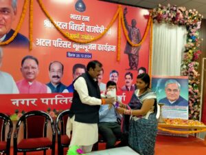 जिला कलेक्टर सुमित अग्रवाल देवनारायण चंद्राकर शिवेंद्र परिहार आयुक्त गजेन्द्र यादव विधायक सांसद विजय बघेल जी ने बताया कि सन् 2000 का वो क्षण आया 1 नवंबर श्री मान अटल बिहारी वाजपेयी जी ने अपने प्रधानमंत्री कार्यकाल में उपहार के रूप में सभी की भावना का ख्याल रखते हुए छत्तीसगढ़ राज्य हमें उपहार के रूप में दिया पुरे छत्तीसगढ़ वासियों की ओर से उनका आभार व्यक्त करता हूं भारत रत्न के रूप में देश ने उन्हें सम्मान दिया हम सभी आज उनकी जयंती मना रहे हैं वे एक बहुत अच्छे कवि थे एक साधु के रूप में थे जिन्होंने विवहा नहीं किया 15 साल की उम्र से देश की सेवा में लगे रहे उनकी अनेकों कविता रही मैं जी भर जिया मैं मन से मरूं लौटकर आऊंगा कूच से क्यों डरूं आज हम सभी उनको नमन करते हैं