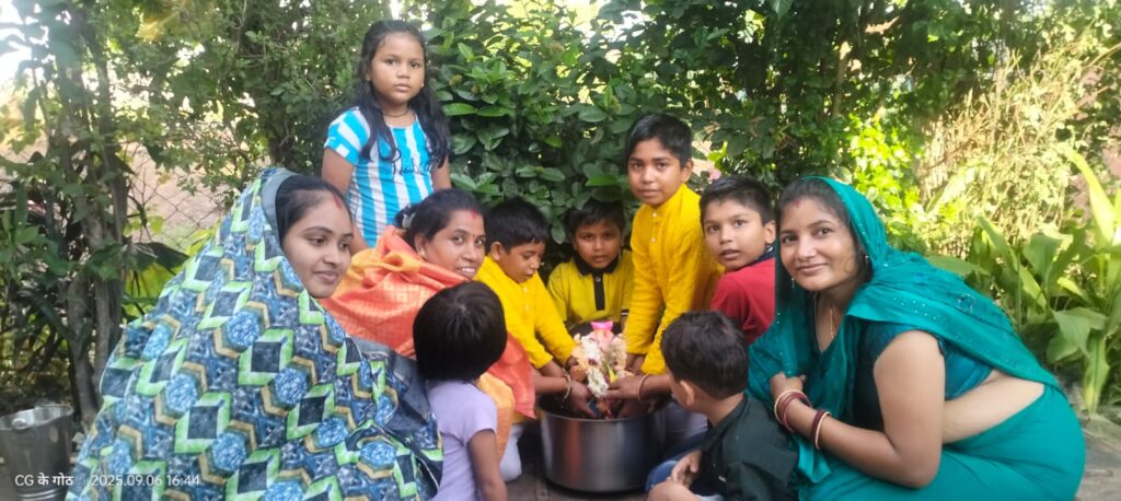 आदित्य और अश्विन साहू ने मिट्टी से बनी गणेश मूर्ति का स्थापना अपने घर में किया, जो पर्यावरण के अनुकूल है। उन्होंने गणेश जी की मूर्ति को घर में ही विसर्जित किया, जिससे जल प्रदूषण को रोका जा सके।