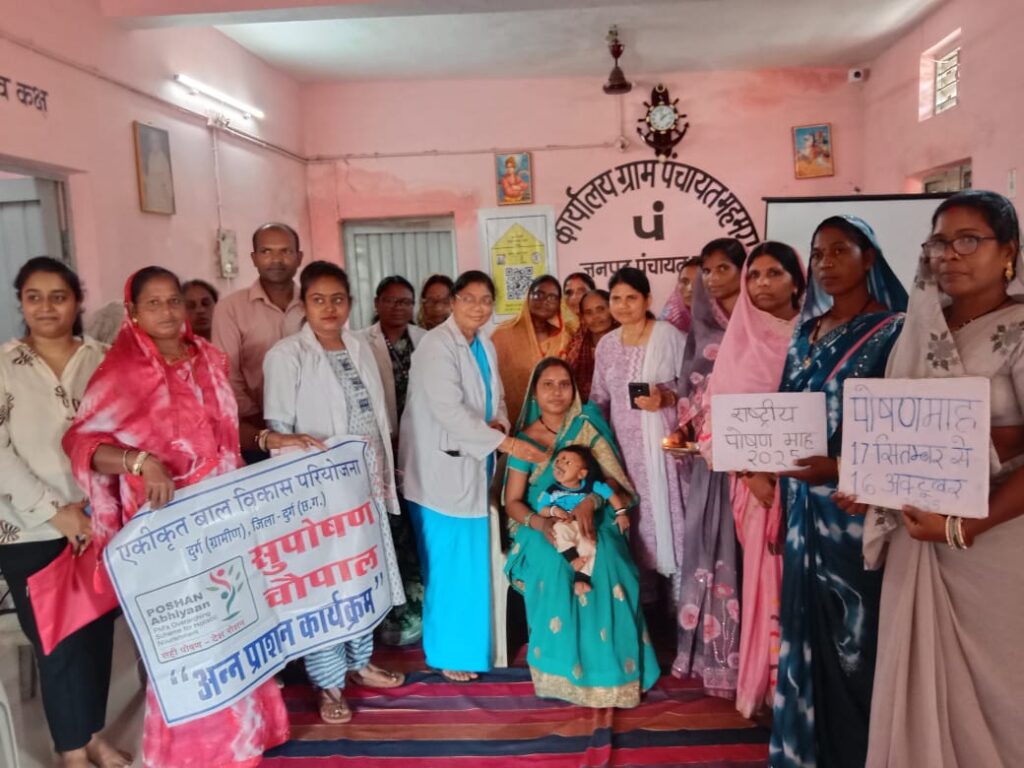 पर्यवेक्षक शशि रैदास द्वारा सुपोषण चौपाल में अन्नप्राशन करवाया गया, एवं ऊपरी आहार विषय पर जानकारी दी गई, जिसका उद्देश्य महिलाओं और बच्चों के स्वास्थ्य को बेहतर बनाया जिससे परिवार और समाज को मजबूती मिल सके।कार्यक्रम में ग्राम पंचायत सरपंच नर्मदा ठाकुर, पंच, आंगनबाड़ी कार्यकर्ता, मितानिन उपस्थित रहीं ।