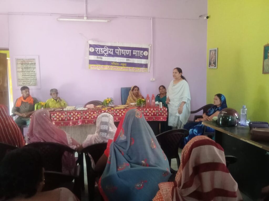 राष्ट्रीय पोषण माह के अंतर्गत ग्राम महुदा में पंचायत स्तरीय कार्यक्रम में पौष्टिक आहार व्यंजन का प्रदर्शन किया गया। स्वस्थ भोजन महत्व में दामिनी साहू, मधुकांता साहू, खुमेश्वरी साहू, स्वीटी सोनवानी, महिला बाल विकास विभाग पर्यवेक्षक एवम् गीता द्वारा संक्षिप्त जानकारी दी गई।
