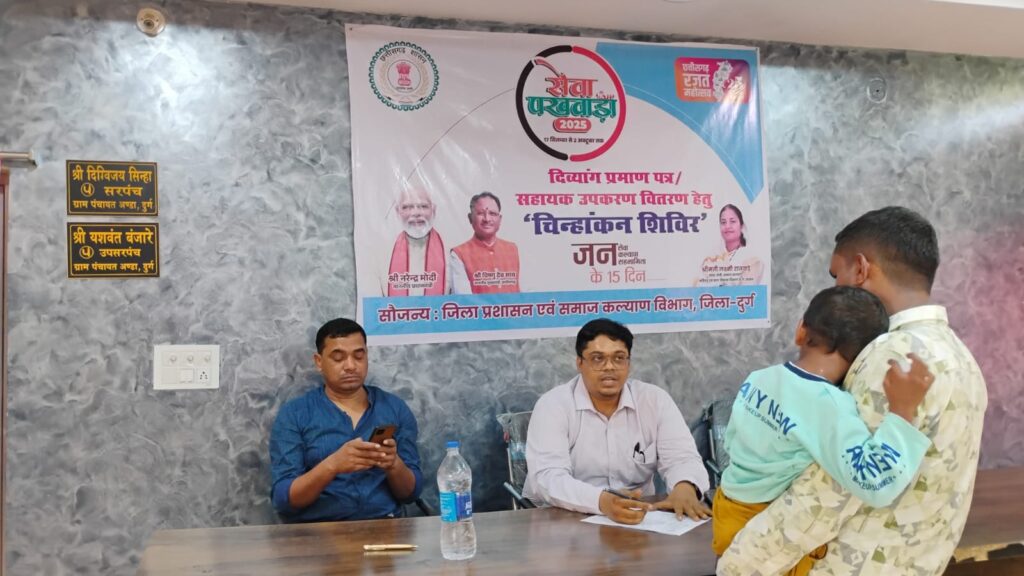 दुर्ग, रजत जयंती महोत्सव के अवसर पर दिनांक 17 सितम्बर से 2 अक्टूबर 2025 तक जिले में चल रहे ‘सेवा पखवाड़ा दिवस’ कार्यक्रम के तहत आज समाज कल्याण विभाग दुर्ग द्वारा ग्राम पंचायत अण्डा में दिव्यांगजन सहायता उपकरण वितरण हेतु चिन्हांकन शिविर का आयोजन किया गया।