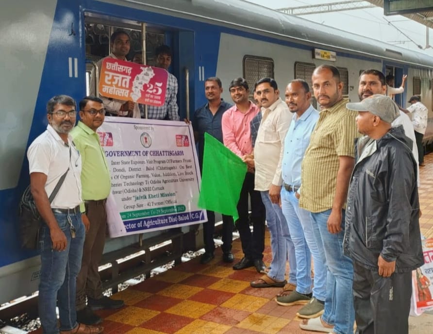 कृषि विभाग कार्यालय वशिष्ठ कृषि विकास अधिकारी द्वारा जैविक खेती मिशन योजना अंतर्गत राज्य के बाहर पांच दिवसीय भ्रमण सह प्रशिक्षण कार्यक्रम हेतु एग्रीकल्चर यूनिवर्सिटी भुवनेश्वर (उड़ीसा); एवं सेंट्रल राइस रिसर्च इंस्टीट्यूट कटक (उड़ीसा) 36 कृषक सह 6 अधिकारियों को दिनांक 24.09.2025 से 29.092025 तक शमलित होने के लिए रवाना हुए