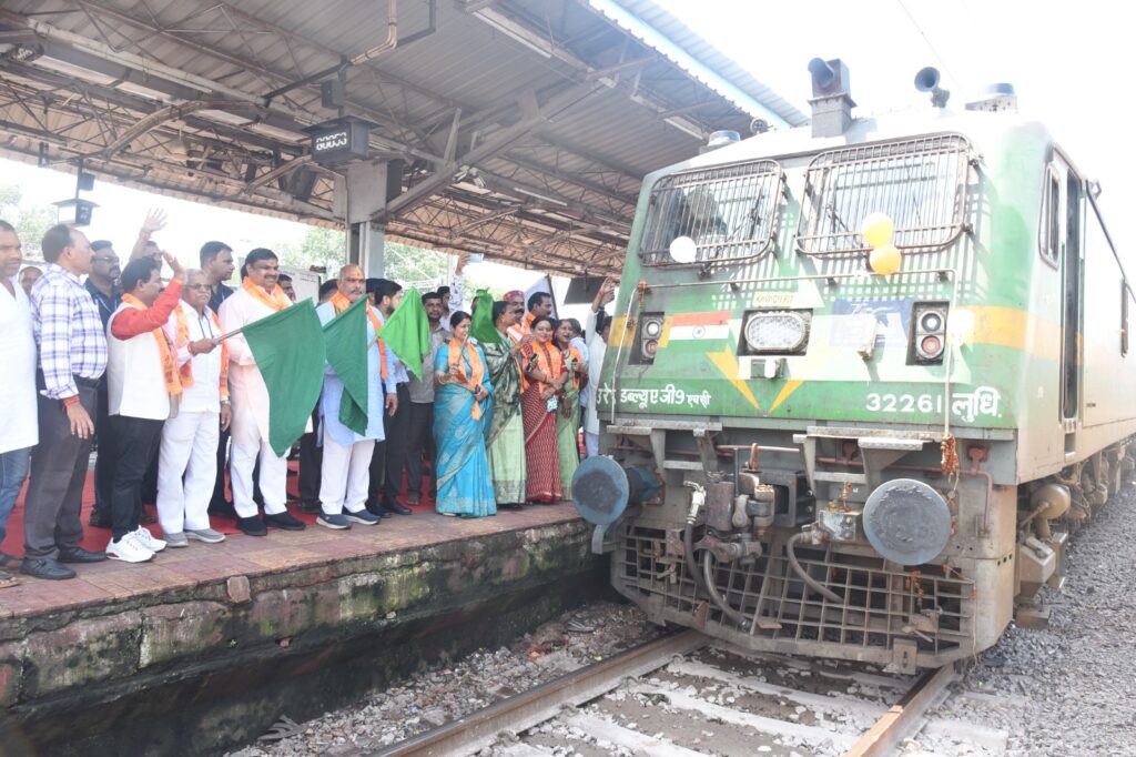 दुर्ग, 01 अक्टूबर 2025/ मुख्यमंत्री श्री विष्णु देव साय सरकार की महत्वाकांक्षी योजना ‘रामलला दर्शन योजना’ के अंतर्गत आज दुर्ग जिले से रामभक्तों का एक बड़ा जत्था अयोध्या धाम के लिए रवाना हुआ। दुर्ग रेलवे स्टेशन से 179 श्रद्धालुओं को आस्था स्पेशल ट्रेन के माध्यम से रवाना किया गया, जिनमें 135 श्रद्धालु ग्रामीण क्षेत्र से तथा 44 शहरी क्षेत्र से शामिल हैं। इस अवसर पर प्रदेश के स्कूल शिक्षा मंत्री श्री गजेन्द्र यादव, अहिवारा विधायक श्री डोमनलाल कोर्सेवाड़ा, दुर्ग ग्रामीण विधायक श्री ललित चंद्राकर, महापौर श्रीमती अलका बाघमार ने, श्रद्धालुओं से भरी आस्था स्पेशल ट्रेन को हरी झंडी दिखाकर रवाना किया।