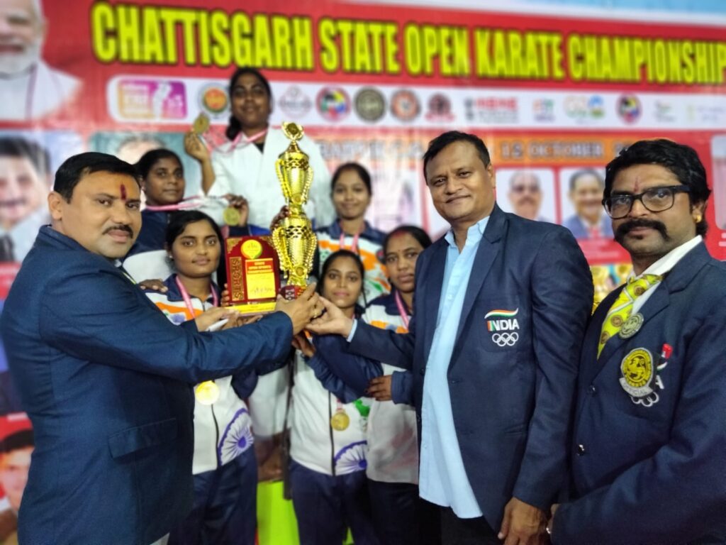 छत्तीसगढ़ राज्य स्तरीय ओपन कराते चैम्पियनशिप 2025 को राजधानी रायपुर के पंडित रविशंकर यूनिवर्सिटी फिजिकल एजुकेशन जिम्नेजियम हाल रायपुर में राजधानी कराते अकादमी राज्य कराते संघ यू. एस. के छत्तीसगढ़ एवं कराते वेलफेयर सोसाइटी के तत्वाधान में संपन्न हुआ जिसमें बलौदा बाजार , जांजगीरचापा, शक्ति , बिलासपुर , महासमुंद , गरियाबंद , कोरिया , दुर्ग , कोरबा , राजनांदगांव , रायगढ़ , सारंगढ़ , कवर्धा , बेमेतरा सहित राजधानी रायपुर जिला के 400 महिला पुरुष खिलाड़ी कोच मैनेजर ने शिरकत किया दुर्ग जिले से सेंसाई हरीश साहू के 17 खिलाड़ियों ने जिला की ओर से प्रतिनिधित्व किया काता इवेंट , एवं कुमीते इवेंट में 17 खिलाड़ियों में से 10 खिलाड़ियों ने गोल्ड मेडम प्राप्त कर दुर्ग जिला का नाम रोशन किया जिसमें 4 सिल्वर , 3 बॉन्स मेडल भी प्राप्त किए है गोल्ड मेडल प्राप्त करने वाले खिलाड़ी के नाम इस प्रकार है तेजेश्वरी साहू , मेघा गोस्वामी , संगम वर्मा , प्रियल साहू , धारणी साहू , पुष्पलता साहू , मोक्ष साहू , बबीता साहू , शाहिदा बेगम , प्रेरणा बंजारे , कराते कोच सेंसाई हरीश साहू ने बताया कि 17 खिलाड़ियों में 10 गोल्ड , 4 सिल्वर , 3 ब्रॉन्ज मेडल प्राप्त करना दुर्ग जिले के लिए गौरव की बात है हमारे सभी खिलाड़ी मेहनतकश है नेशनल में भी 7 बार गोल्ड मेडल प्राप्त कर चुके है यह उनकी 5 सालों की कड़ी मेहनत और परिश्रम का फल है जो हमें बेस्ट कराते कोच और बेस्ट कराते टीम दुर्ग के लिए हमे सम्मान मिला है मै इनकी उज्जवल भविष्य की कामना करता हु ऐसे ही निरंतर आगे बढ़ते रहे अपना और अपने माता पिता गुरु का नाम रोशन करते रहे यू. एस. के. इंडिया के जनरल सेकेट्री सिहान अरुण पांडे ,रुक्मणि रानू , वीरेंद्र डडसेना ने बधाई दी वरुण पांडे ने दुर्ग जिला से हरीश साहू को बेस्ट कराते कोच और बेस्ट कराते टीम के लिए सम्मान किया और उनके उज्जल भविष्य की कामना की ।