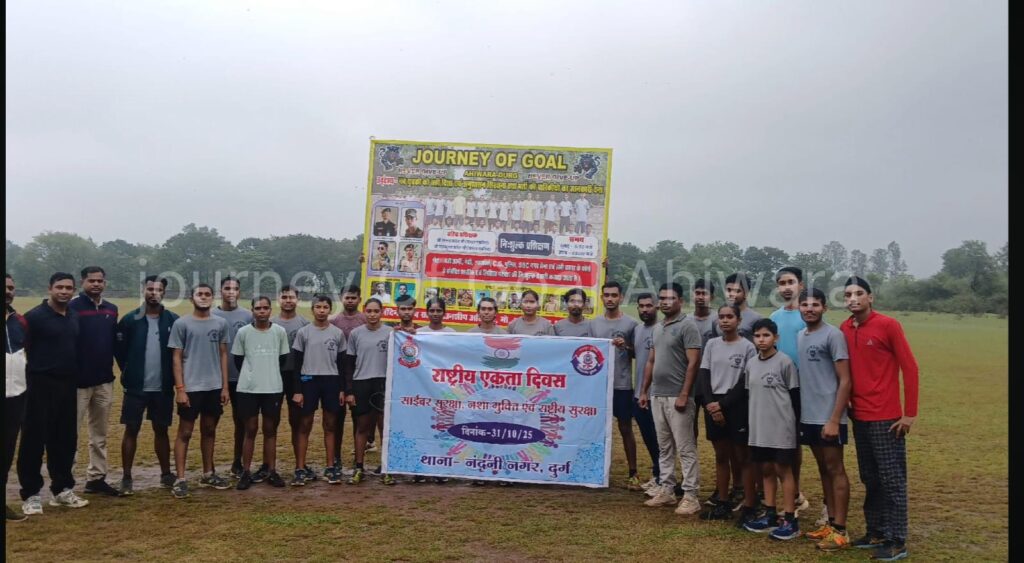 नंदिनी अहिवारा:- राष्ट्रीय एकता दिवस के अवसर पर नंदनी थाना एवं जर्नी ऑफ गोल संस्था के संयुक्त तत्वावधान में शुक्रवार को नशा मुक्ति, सुरक्षा और साइबर सुरक्षा को लेकर जनजागरूकता दौड़ (रनिंग) का आयोजन किया गया। इस कार्यक्रम का नेतृत्व थाना प्रभारी पारस ठाकुर ने किया।