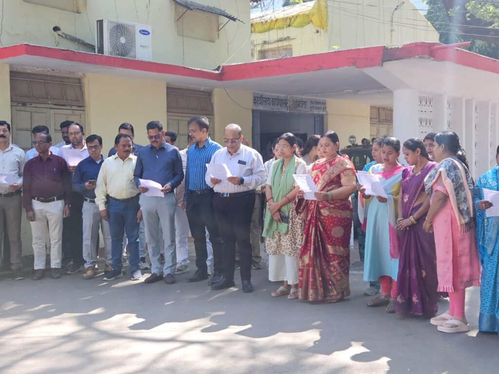 दुर्ग, 07 नवंबर 2025/ राष्ट्रीय गीत वंदे-मातरम् के 150 वर्ष पूर्ण होने के अवसर पर आज देश एवं प्रदेश के साथ दुर्ग जिले के सभी नगरीय निकायों, जनपद पंचायत एवं ग्राम पंचायतों में सामूहिक राष्ट्रीय गीत गायन का आयोजन पूर्वान्ह 10 बजे किया गया। दुर्ग जिले में जिला स्तरीय आयोजन जिला पंचायत सभा कक्ष में किया गया। जिसमे प्रदेश के अनुसूचित जाति विकास प्राधिकरण के उपाध्यक्ष अहिवारा विधायक श्री डोमन लाल कोर्सेवाड़ा, जिला पंचायत अध्यक्ष श्रीमती सरस्वती बंजारे, सदस्य सुश्री प्रिया साहू सहित अन्य सदस्य गण तथा कलेक्टर श्री अभिजीत सिंह, जिला पंचायत के सीईओ श्री बजरंग दुबे, जनपद पंचायत के सीईओ श्री रूपेश पाण्डे, जिला एवं जनपद पंचायत कार्यालय के समस्त अधिकारी व कर्मचारी सम्मलित हुए। उपस्थित सभी जनप्रतिनिधि और अधिकारी कर्मचारियों ने कार्यक्रम के शुभारम्भ एवं अंत मे सामूहिक रूप से राष्ट्रीय गीत वंदे-मातरम् गायन किये। कार्यकम का शुभारंभ प्रातः 10 बजे देश की राजधानी दिल्ली में आयोजित कार्यक्रम में यशस्वी प्रधानमंत्री श्री नरेन्द्र मोदी जी ने किया। प्रधान मंत्री श्री मोदी जी ने राष्ट्रीय गीत के पंक्तियों की भावार्थ से देश वासियों को अवगत कराया। राष्ट्रीय गीत के 150 वर्ष पूर्ण होने के अवसर पर 150 रूपए का सिक्का तथा डाक टिकट जारी किया गया।जिला मुख्यालय में कलेक्टोरेट सहित समस्त कार्यालयों में अधिकारी कर्मचारियों ने सामूहिक राष्ट्रीय गीत गायन किये और दिल्ली से लाईव प्रसारित कार्यक्रम का दृश्य श्रवण किये।