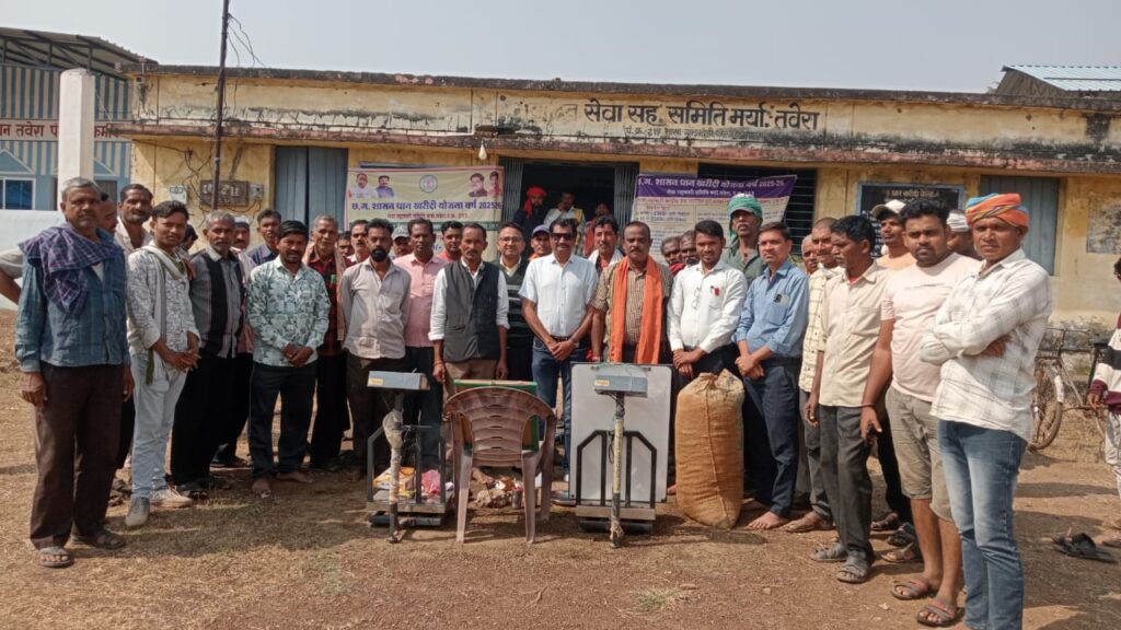 गुण्डरदेही/ गुण्डरदेही विकास खण्ड के अंतर्गत सेवा सहकारी समिति मर्यादित तवेरा में पूर्व सांसद प्रतिनिधि थानसिंह मंडावी ने पूजा अर्चना कर धान खरीदी की शुभारंभ किया गया मंडावी ने कहा कि सरकार ने किसानों की एक एक दाना खरीदने के लिए प्रतिबद्ध है 3100 रुपए की दर से धान खरीदी शुरू हो चुकी है सरकार ने 3100रूपये की दर से प्रति एकड़ 21 क्विंटल धान खरीद रही है किसानों को किसी भी प्रकार की दिक्कत न हो उसके लिए सरकार ने किसान कुटीर बनाया गया है प्राधिकृत अध्यक्ष तेजराम साहू ने बताया कि धान खरीदी के पहले दिन ही किसान उत्साह पूर्वक सोसाइटी पहुंचे और धान तौल कर प्रक्रिया शुरू किया गया पहले दिन 8 किसानों ने टोकन कटवाकर धान बेचा गया कार्य क्रम में पूर्व सांसद प्रतिनिधि थानसिंह मंडावी , प्राधिकृत अध्यक्ष तेजराम साहू, सरपंच शैलेन्द्र निषाद, किलेपार सरपंच दिलेश्वर साहू, कसौंदा सरपंच जितेंद्र चंद्राकर, उपसरपंच सनत साहू,प्राधिकृत अधिकारी यशवंत देवांगन, दीप्ति साहू, कंप्यूटर ऑपरेटर वैजयंती माण्डले, पूर्व प्राधिकृत अध्यक्ष तोरण यदु, पूर्व सरपंच खुमान साहू, तौल ठेकेदार उत्तम साहू, किसान देवेंद्र साहू, श्याम सुन्दर, प्रीतम साहू, रामकुमार साहू, गुहा राम, सुरेश सिन्हा, चंद्रपाल सहित किसान लोग उपस्थित थे