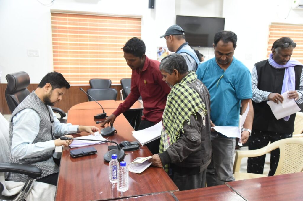 दुर्ग, 24 नवंबर 2025/ जिला कार्यालय के सभाकक्ष में कलेक्टर श्री अभिजीत सिंह ने जनदर्शन कार्यक्रम में पहुंचे जनसामान्य लोगों से मुलाकात कर उनकी समस्याएं सुनी। उन्होंने जनदर्शन में पहुंचे सभी लोगों की समस्याओं को गंभीरता से सुना और समुचित समाधान एवं निराकरण करने संबंधित विभागों को शीघ्र कार्यवाही कर आवश्यक पहल करने को कहा। जनदर्शन कार्यक्रम में डिप्टी कलेक्टर श्री हितेश पिस्दा एवं श्री उत्तम ध्रुव भी उपस्थित थे। जनदर्शन में अवैध कब्जा, आवासीय पट्टा, प्रधानमंत्री आवास, भूमि सीमांकन कराने, सीसी रोड निर्माण, ऋण पुस्तिका सुधार, आर्थिक सहायता राशि दिलाने सहित विभिन्न मांगों एवं समस्याओं से संबंधित आज 91 आवेदन प्राप्त हुए।