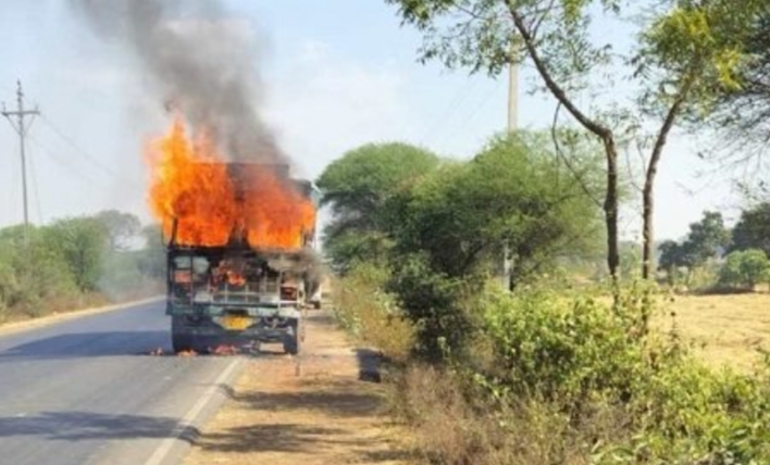 रायपुर, आरंग-खरोरा मुख्य मार्ग पर चावल से भरे एक ट्रक में अचानक भीषण आग लग गई। आग ने पूरे ट्रक को अपनी चपेट में ले लिया और ट्रक का केबिन पूरी तरह जलकर खाक हो गया। घटना के बाद सड़क पर वाहनों की आवाजाही कुछ देर के लिए बाधित रही और मौके पर लोगों की भीड़ जुट गई।