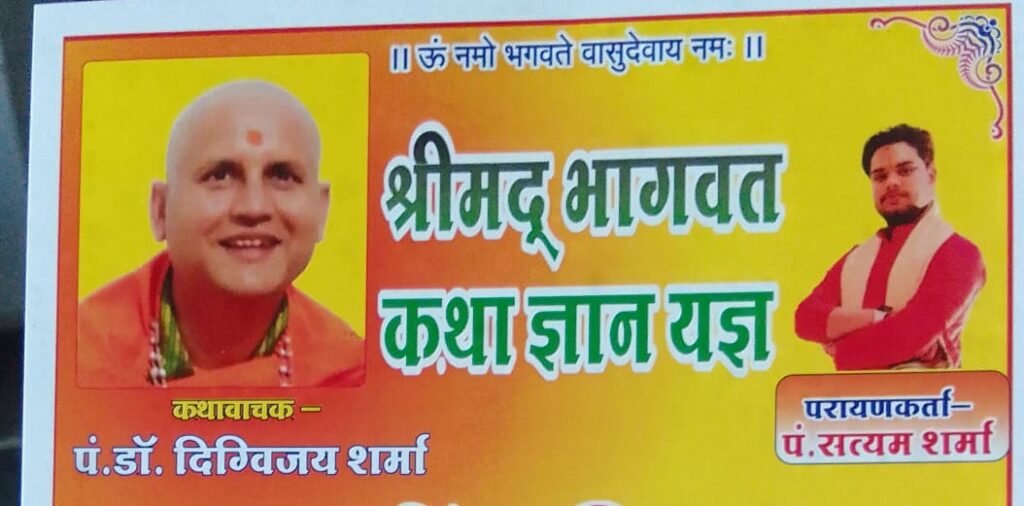 कथा, 23 दिसंबर से 31 दिसंबर तक प्रतिदिन दोपहर 1 बजे से 5 बजे तक चलेगी। दिनांक 23 दिसंबर की सुबह 12 बजे से कलश यात्रा गांव की बस्ती में भ्रमण करते हुए शीतला मंदिर प्रांगण तक पहुंचेगी ।तत्पश्चात शाम 4 बजे से वेदी पूजन, गौकर्ण की कथा सुनाई जायेगी। आयोजक परिवार ने बताया कि 24 दिसंबर को भीष्म स्तुति की कथा होगी, 25 दिसंबर को कपिल देव मुनि संवाद, 26 दिसंबर जड़ भरत प्रह्लाद चरित्र, 27 दिसंबर श्री राम जन्म एवं श्री कृष्ण जन्म की कथा, 28 दिसंबर बाललीला एवं गोवर्धनपूजा, 29 दिसंबर को श्री कृष्ण रूखमणी मंगल विवाह की कथा, 30 दिसंबर श्री सुदामा चरित, परीक्षित मोक्ष की कथा और 31 दिसंबर को गीता व्याख्यान एवं पूर्ण आहुति का कार्यक्रम सम्पन्न होगा। जो भी श्रद्धालुगण कलश यात्रा में जाने के इच्छुक है वो कलश के साथ शामिल होने के लिए साहू परिवार के द्वारा आमंत्रित किये गये हैं। अधिक से अधिक संख्या में कथा श्रवण कर इस कार्यक्रम को सफल बनाने की अपील साहू परिवार के द्वारा की गई है।