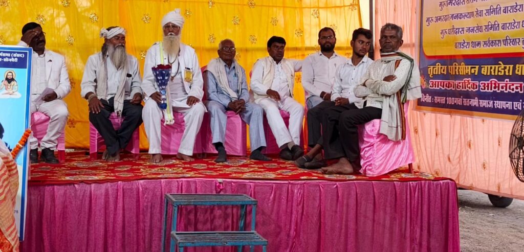 आरंग | सतनामी समाज के महान विभूति दादा नकुलदेव ढीढ़ी जी की जयंती के पावन अवसर पर 100गवां सतनामी समाज स्थापना एवम गुरुद्वारा धर्मसभा संसद तृतीय परिसिमन बाराडेरा धाम के तत्त्वधान मे आयोजित आरंग ब्लॉक अंतर्गत ग्राम सोनपैरी(दरबा) मे भव्य कार्यक्रम में प्रदेश उपाध्यक्ष श्री शत्रुहन बारले विशिष्ट अतिथि के रूप में सम्मिलित हुए। इस दौरान उन्होंने दादा नकुलदेव ढीढ़ी जी के चित्र पर माल्यार्पण कर उन्हें भावभीनी श्रद्धांजलि अर्पित की।