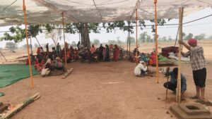 सामूहिक आदर्श विवाह हेतु पारंपरिक मंडप निर्माण का कार्य शुरू हुआ।