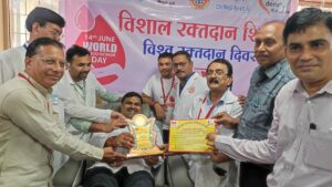 दुर्ग जिला ब्लड बैंक में विश्व रक्तदाता दिवस का आयोजन, 28 सामाजिक संस्थाओं एवं कॉलेज का रक्तदान पर किया गया सम्मान* दुर्ग शहर विधायक श्री गजेन्द्र यादव ने अपना ओ पॉजीटीव रक्तदान किया, विश्व रक्तदाता दिवस में रक्तदान करने की ली गई शपथ cgcrimenews