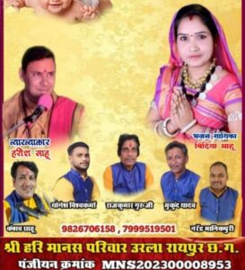 श्री हरि मानस परिवार उरला का श्री राम कथा व लोक कलाकारों द्वारा संगीत मय भजन का आयोजन कल ग्राम लोहरसिंग पाटन मे