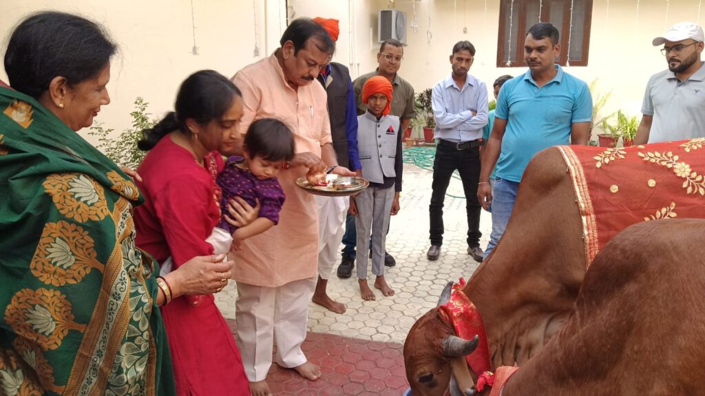 हम भी गौ माता को खिचड़ी खिलाने की परम्परा भगवानी यादव ने दौहो पाडे गौ माता के आशीर्वाद से सरे कष्ट परेशानी दुख दर्द मिट जाते हैं गौमाता में अनेक देवताओं का वास है वेद पुराणों में सत्यता सिद्ध होती आज की पूजा कर गौवर्धन पुजा कर हमारी बहनों मातर मनाते हैं पुजा कर रक्षा की भावना रखते हैं